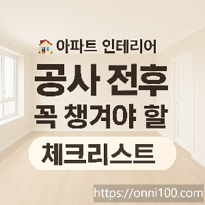 안녕하세요! 오늘은 아파트 인테리어 공사 전후로 꼭 챙겨야 할 것들을 정리해볼게요.