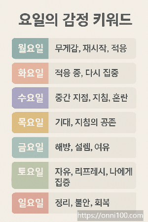 감정은 요일마다 조금씩 다른 리듬을 타고 있어요.